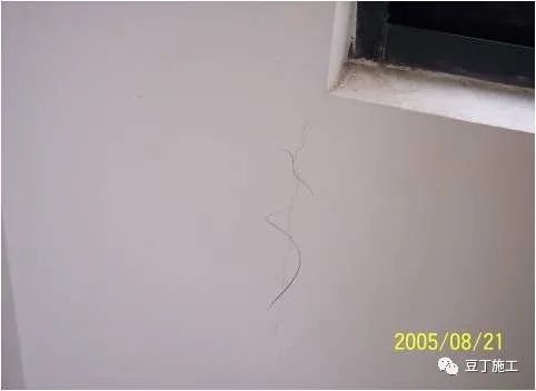 2、窗洞上角、窗台转角部位产生斜裂缝。砌体墙身在构造柱位置有裂缝