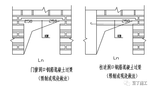 2、宽1000mm及以上的门窗洞,采用钢筋砖过梁时,其入墙长度不宜小于250mm。、