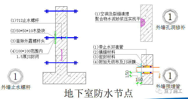 5、施工工序可参照:穿墙套管及止水环制作并检查验收穿墙套管安装及固定管道安装填缝材料填缝嵌填防水油膏。