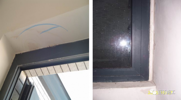 裂缝现象:外墙铝合金门窗孔口周边渗漏。