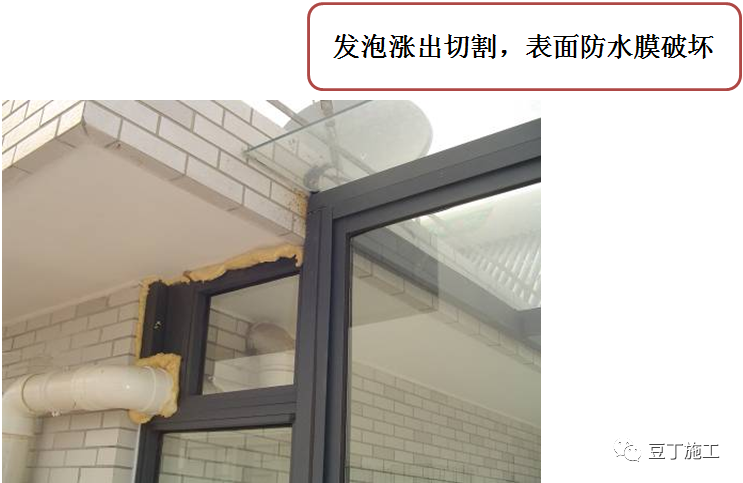 3、窗框与墙体洞口留缝宽度符合要求,安装间隙采用聚氨酯发泡胶封闭,要求发泡胶要连续灌注;溢出窗框的发泡剂,在未凝固前及时推进缝中。