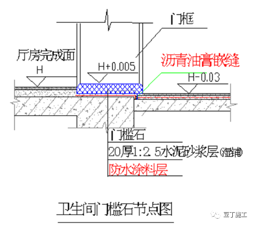 2、卫生间门框、门套要安装在门槛石之上,门槛石缝隙用沥青油膏嵌缝。