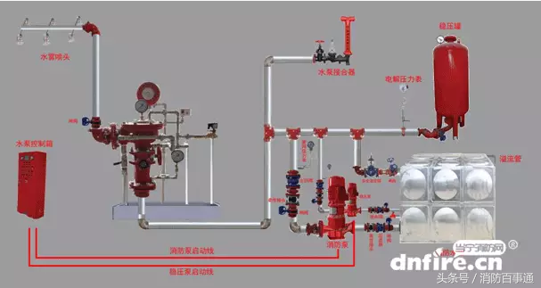 6、雨淋系统、预作用系统的启泵问题。当雨淋阀、预作用阀采用报警探测器连锁启动时,应是该区域火灾确认或两点报警联动。压力开关应接入水泵控制柜直接启动水泵。