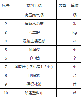 (3)为防止严寒天气对设备的破坏建议在空调机组等重要设备机房区域。临时增加电暖器原则10㎡/台(电暖器功率不小于1.8KW),电暖器按房间大小及设备位置合理布局。各空调机房安装温度表一台,室温低于8℃时开启电暖器。采用 导线为电暖器电源线,每台预估10米。