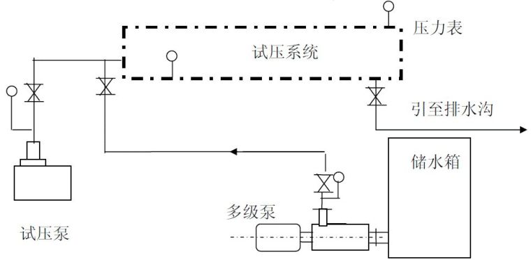 2、试压用的压力表必须经过校验合格,并有铅封。精度等级不得低于1.5级,压力表量程范围为试验压力的1.5-2 倍,每个系统至少2 块,分别设在最高、最低点;