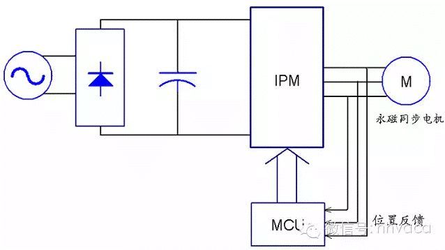 直流调速系统在电路结构上与交流变频系统比较相近,同样具有把工频交流电转换为直流电的整流环节和把直流电二次转化成交流电的逆变环节。它们之间的区别一方面是采用的电机不同,直流调速系统采用的是永磁同步电机,不同于交流变频系统所采用的三相异步感应电机,从电机的角度来说效率更高;另一方面直流调速系统具有位置检测环节,通过对压缩机转子的位置进行检测来实现对压缩机电机的闭环控制,相比较交流变频系统的开环控制来说,控制的精度更高,其效率也更高。