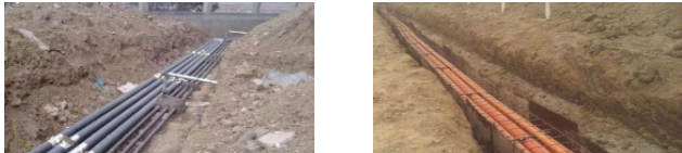 2、管沟基础垫层横截面大于管道300mm。