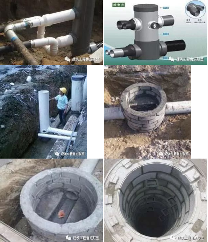 1、 检查井的位置、规格、做法、尺寸满足设计要求;砌井底基础应与管道基础同时浇注,井壁垂直、表面抹灰密实不透水。
