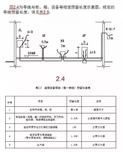 垂直方向敷设的线管(沿墙、柱引上或引下),其配管长度一般应根据楼层高度和箱、柜、盘、板、开关、插座等的安装高度进行计算,如图所示