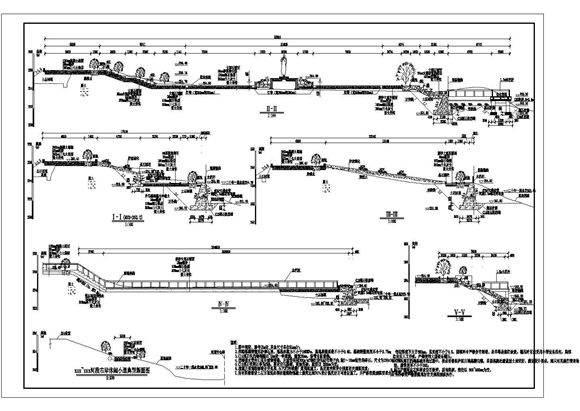 这是本人之前完成的有关综合生态河道整治、河道景观设计的工程设计图,非常完整,值得补充说明:本套图总共9张图纸,其中主要是包括了景观处的平面布置图,还有就是设计中相应的剖面图,在纵剖面设计中涉及了重力