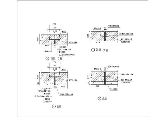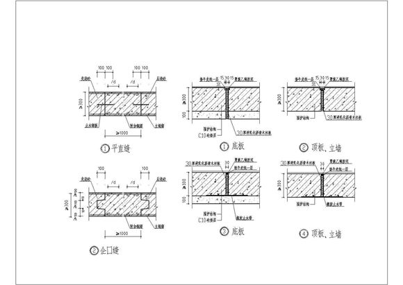 该图纸为地下室工程防水变形缝比较常见的做法,图纸内容主要包含:底板,顶板、立墙,平直缝,阶梯缝,企口缝等构造大样。