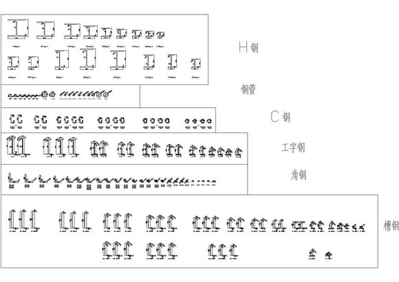 各种型钢的平面尺寸,包括H钢、C钢、槽钢、工字钢等,很全