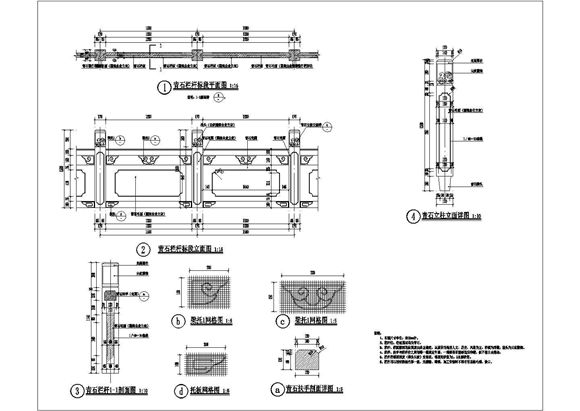 滨河、桥梁景观青石栏杆标准段施工图纸
