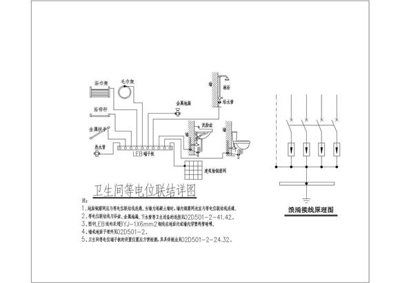 本工程为等电位连接全套施工参考CAD详图,,包含总等电位联结系统图示意、卫生间等电位联结详图等,图纸内容完整,表达清晰,制图严谨,欢迎设计师下载使用