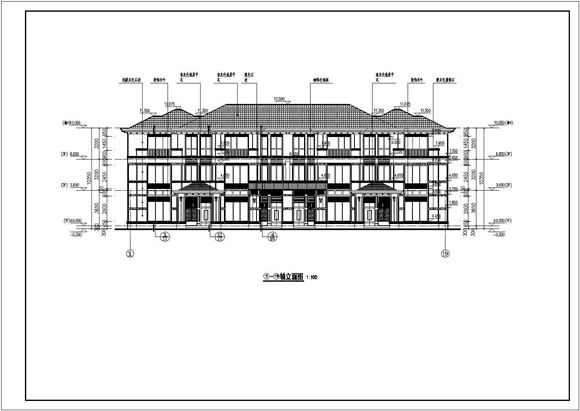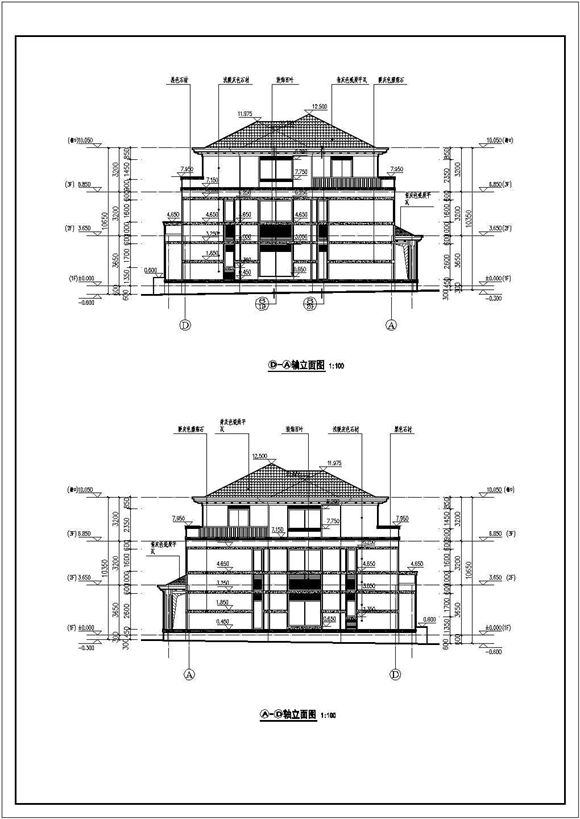 本图为某联排别墅带电梯单体建筑设计施工图,包含地下室夹层平面图、各层平面图、屋顶平面图、立面图。