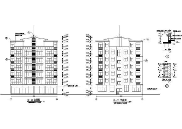 该图纸为某多层砖混结构住宅楼建筑毕业设计图,内容包含建筑设计说明,各层平面图,屋顶平面图,各立面图,各剖面图,楼梯详图,节点详图,门窗表,结构设计图等。