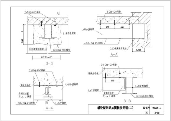 局部开洞,并采用钢结构加固,包括详细节点图纸,比较不错,有参考价值。图纸内容包括:楼板开洞加固处理说明,施工图设计修改通知单,一层局部修改图,板开洞平面位置图(1),开洞4加固大样等。