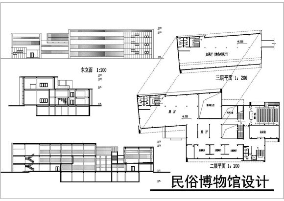 供大家学习参考,多多交流,主要包括一层平面图,二层平面图,三层平面图,立面图,剖面图
