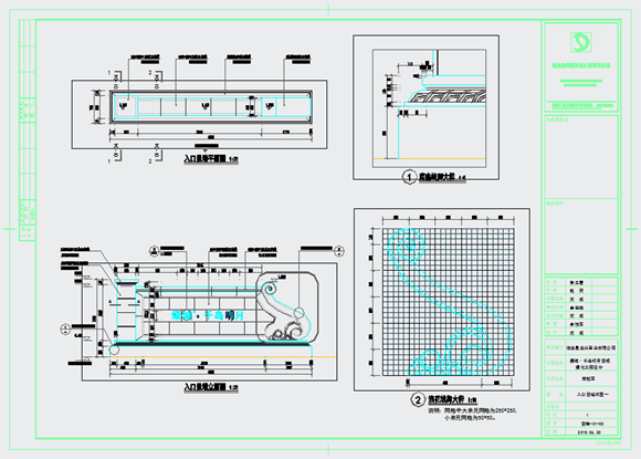 本图纸为某欧式小区入口景观施工图,包含车行道铺装平面图、主入口尺寸定位平面图、主入口景观平面图等,可供参考。