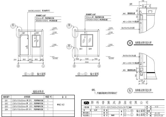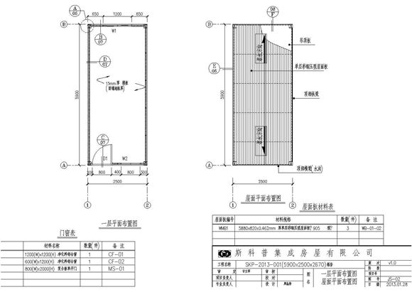 图纸内容包括:箱式组合房设计说明,一层平面布置图、屋面平面布置图,节点大样,吊顶布置图,地板布置图,顶框结构平面布置图,轴单箱结构立面图,配件图,建筑模板加工工程图等。