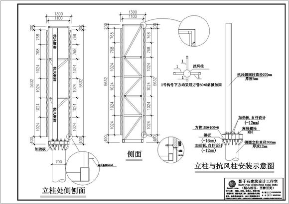 双立柱LED显示屏钢结构架子施工图纸,箱体分布图纸,显示屏3D示意图,钢架子制作工艺图纸,基础图、材料表,各个3D节点图