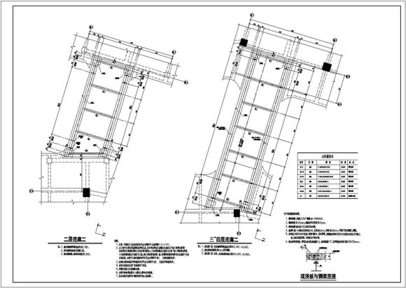 本工程所在地为四川省成都市,包括钢结构连廊及观光电梯钢结构。抗震设防烈度为7度。图纸包括:钢结构设计施工总说明,二、三、四、屋面连廊结构图,节点大样图,观光电梯剖面图,结构详图等共计9张图。