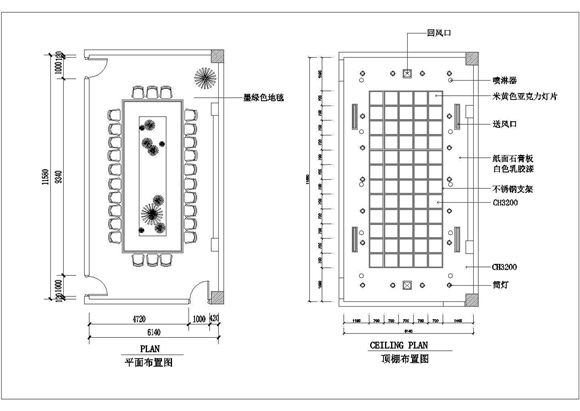 常用的几种小型会议室室内装修设计方案,图纸包括会议室平面布置图和顶棚布置图,供大家下载参考。