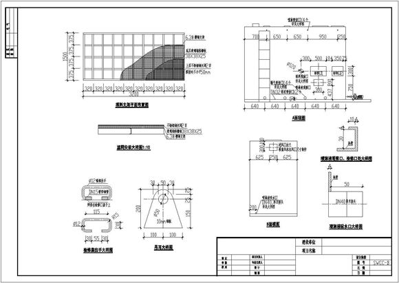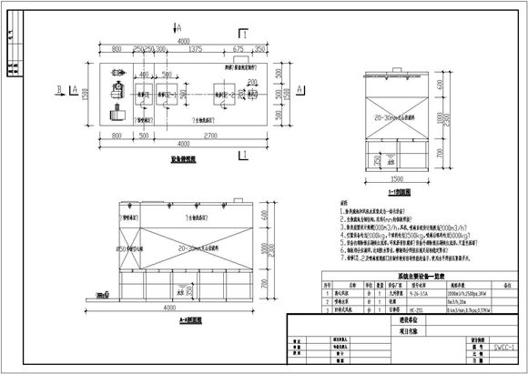 图纸包括设备俯视图、剖面图、设备底座平面布置图、填料支架平面布置图、顶板支架平面布置图、+1.2m加强槽钢平面布置图、A-A剖面图、填料支架平面布置图、滤网安装大样图等,可供参考。