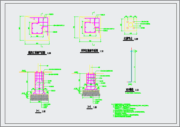 本图纸为庭院灯及草坪灯基础建筑详图,包括庭院灯基础平面图、草坪灯基础平面图、柱脚节点、剖面图等图纸,可供参考。