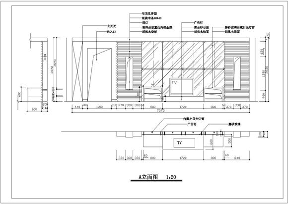 本图纸为:某三室两厅家装设计施工图,内容包括立面图,剖面图,天花板平面图等共6张,内容详细,可供参考。