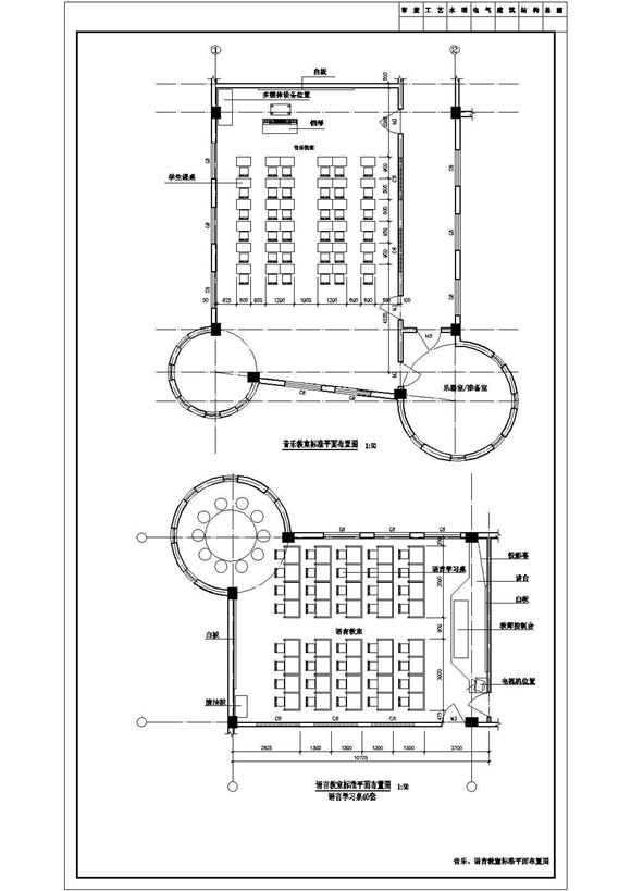 本资料为某小学教学楼各教室平面布置(共4张),其包含的内容为平面图,普通教室标准平面布置图2,普通教室标准平面布置图1,语言教室标准平面布置图等仅供参考