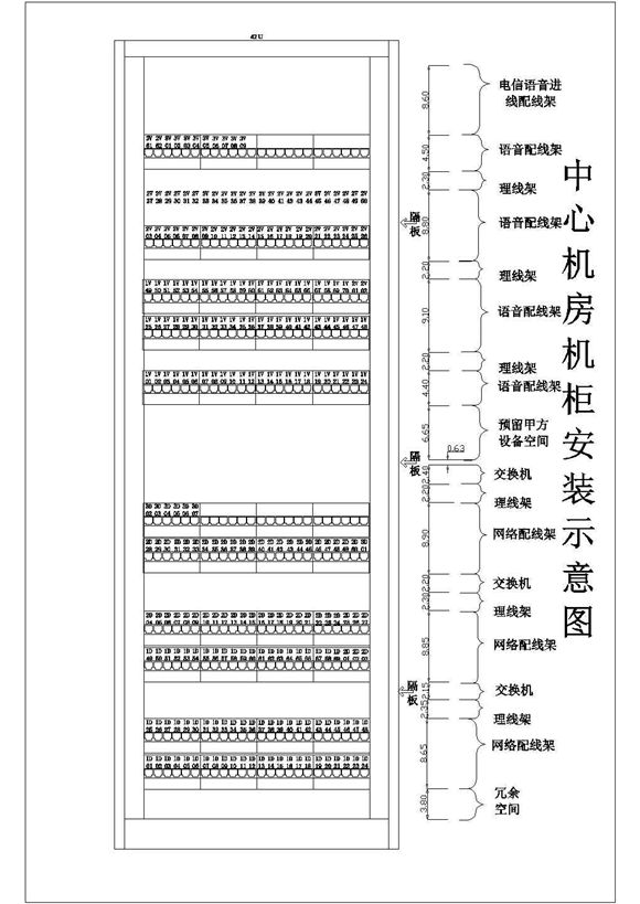 某中心机房机柜综合布线典型机柜图设计CAD图纸