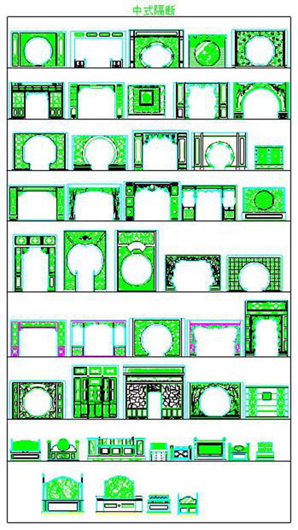 图纸包括中式门、中式隔断、中式柱、中式窗、中式地面、中式栏杆、中式墙面、中式天花等,可供参考。