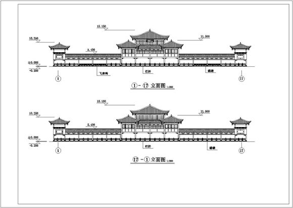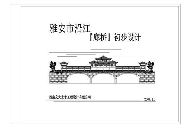 本图纸为:古建筑廊桥建筑设计图纸(共8张),其中包含:平面图、立面图、剖面图等,可供参考。