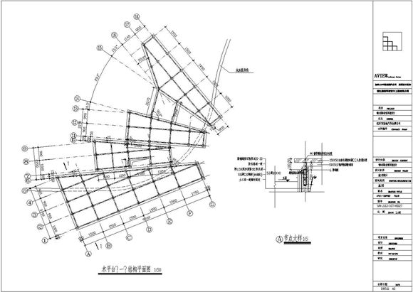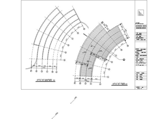 本图纸为:某圆形木平台建筑详细施工CAD图,包括:木平台(二)平面图,木平台(二)结构平面图,木平台(一)平面图,剖面图等,可供参考