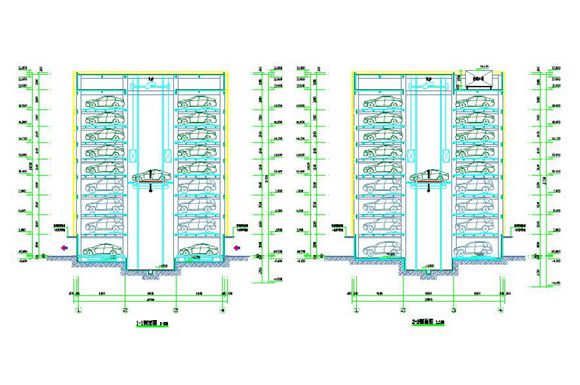 机械停车楼建筑设计cad图纸,图纸包括平面图、剖面图等,可供参考下载。