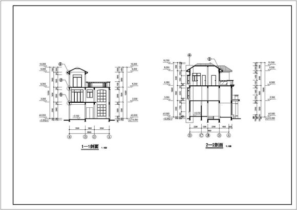 本图纸为别墅建筑结构施工图,其内容包括立面图和剖面图等图纸,顾客参考。