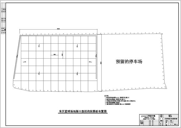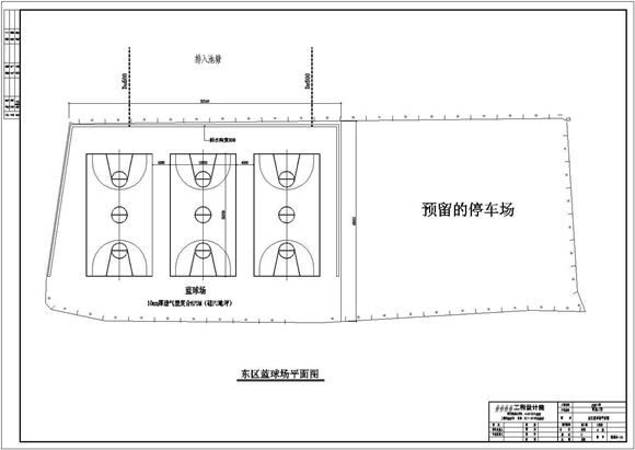 本资料为:某地标准硅PU篮球场建筑施工图,内容包括:东区蓝球场平面图、西区蓝球场平面图、东区蓝球场混凝土垫层浇筑模板布置图、球场、跑道剖面及节点图等,可供参考。
