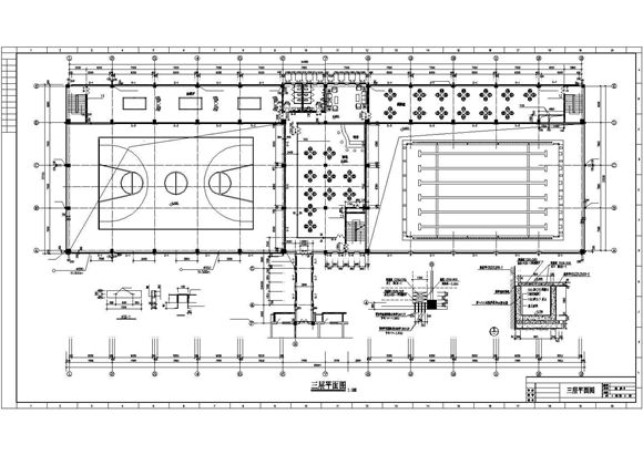 本图纸为:体育馆建筑设计方案全套CAD平面图纸本套图纸包括:图纸目录、工程作法、门窗表、各层建筑平面、立面、剖面图、卫生间详图、楼梯间图、墙身大样等