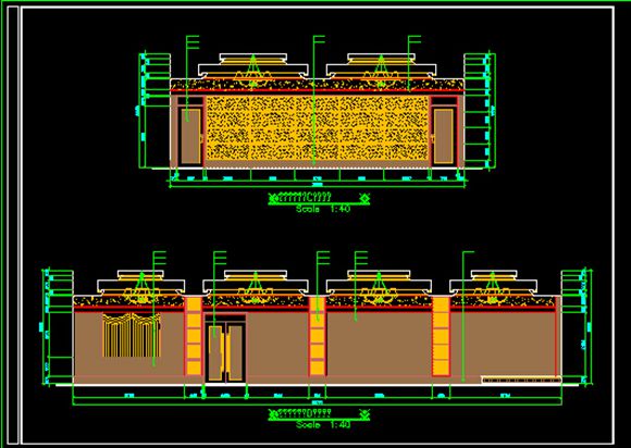 本图纸为:某酒店大会议室立面CAD详图图纸。内容包括:二层大会议室D立面视图、二层大会议室A立面视图等,可供参考。
