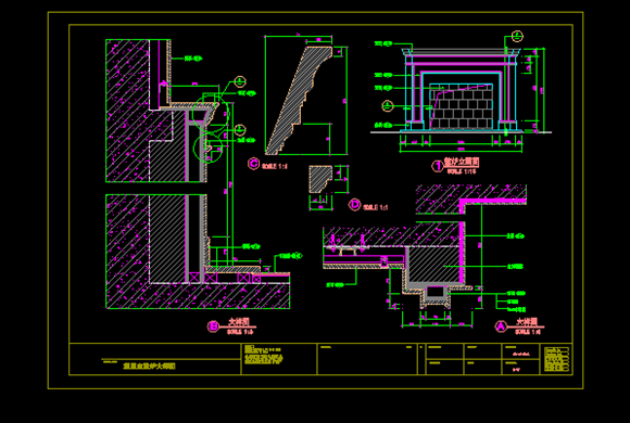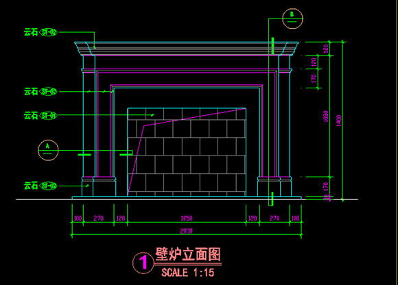 某住宅别墅建筑云石壁炉cad设计大样详图