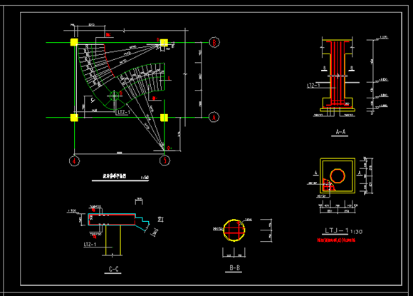 本资料为:实用旋转楼梯全套cad平立面设计详细图纸,内容包括:楼梯剖面图,楼梯结构图,楼梯详图,设计精准,可供参考。