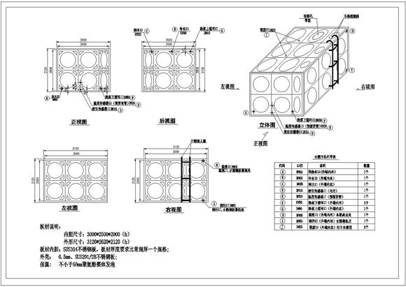方形不锈钢保温水箱CAD图纸(热水系统用)