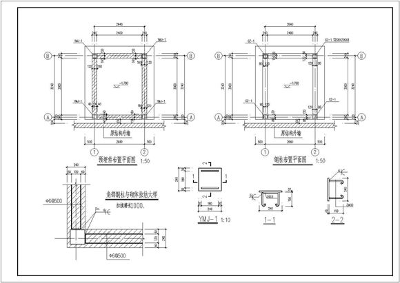 钢框架电梯井道结构施工图(轻钢结构,共7张)