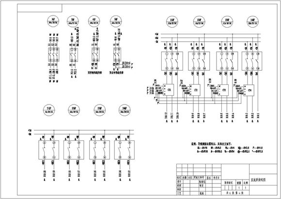 本图包括直流屏柜内元件布置图,直流屏电气原理图,直流屏端子接线图,直流屏接线图,图内有详细的配线要求。图纸总11张