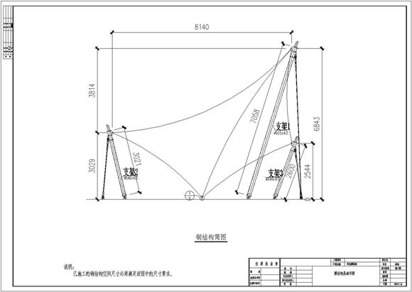 建筑功能:其他图纸深度:施工图结构形式:钢结构钢结构:膜结构基础形式:独立基础图纸张数:16张设计时间:2010内容简介某张拉膜结构设计图本次设计为:某张拉膜结构设计图图