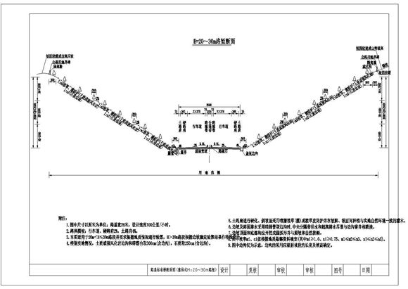 图纸内容有:整体式路堑断面,整体式坚硬岩质路堑断面,局部受地形限制路堑,整体式借土填方路堤,整体式弃方路段路堤,整体式设声屏障路堤,分离式路基断面,浸水路段路堤,整体式超高填、挖方路堤,互通匝道断面。
