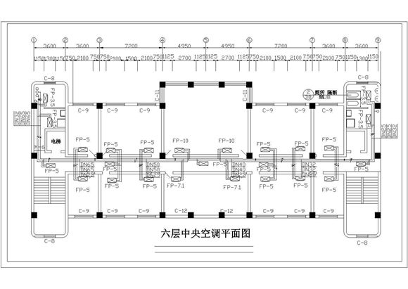 某大楼中央空调平面图,包括一层到十二层的中央空调平面图,共9张图纸。