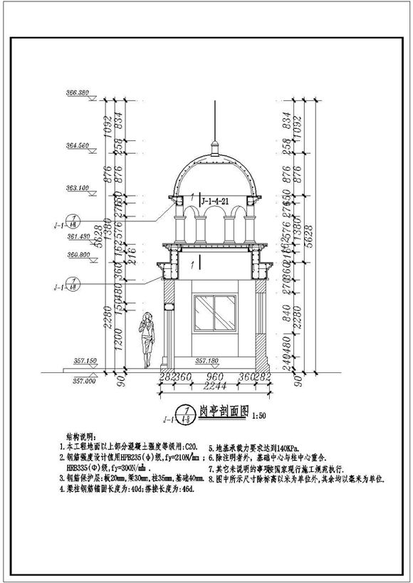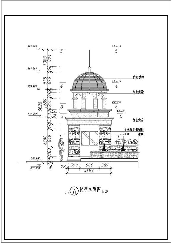 岗亭全套施工图,包括环境平面、平面、立面、剖面以及多张大样图共14张图纸。