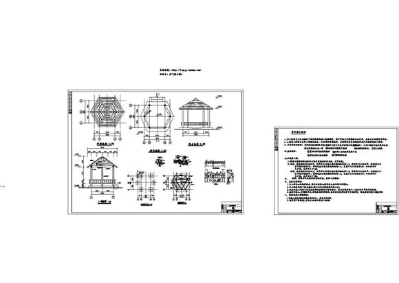 某景观园林小品-六角亭(长3米 宽3米)设计cad全套建筑施工图(含设计说明)